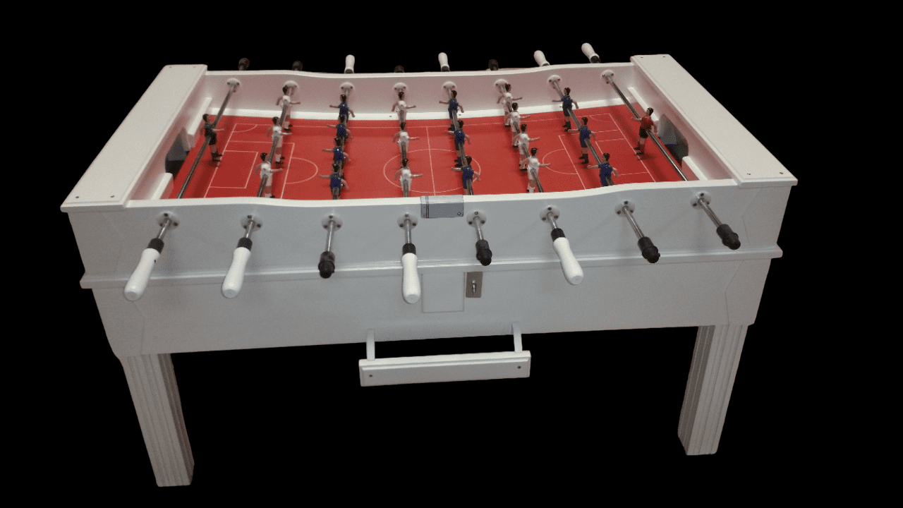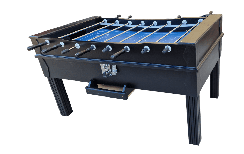 El futbolín modelo MESTALLA está fabricado en madera de Pino de Nueva Zelanda con tabicas de 30 mm de espesor, patas desmontables también en madera maciza que le aporta una estabilidad excepcional está especialmente pensado para lugares colectivos tales como negocios, comunidades, centros sociales, etc.